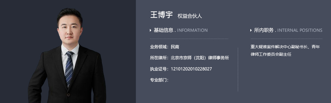 北京市京师(沈阳)律师事务所青年工作委员会副主任、合伙人、重大疑难案件解决中心副秘书长