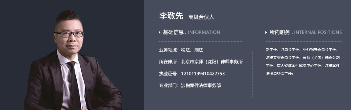 北京市京师(沈阳)律师事务所副主任、监事会主任、业务指导委员会主任、财税专业委员会主任、涉税案件法律事务部主任、京师(全国)税委会副主任、重大疑难案件解决中心主任、高级合伙人、执业律师、法学学士、法律硕士