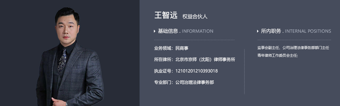 北京市京师(沈阳)律师事务所权益合伙人、青工委主任、公司治理法律事务部部门主任、监事会副主任