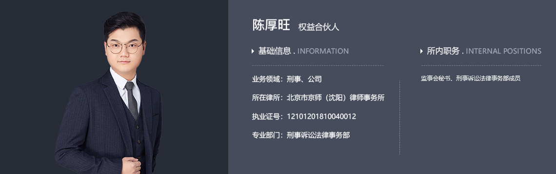 北京市京师(沈阳)律师事务所监事会秘书、合伙人、刑事诉讼法律事务部成员、执业律师