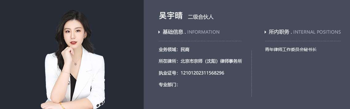 北京市京师(沈阳)律师事务所青年工作委员会秘书长、执业律师、沈阳广播电视台FM98.6《盛京说法》栏目公益律师团成员