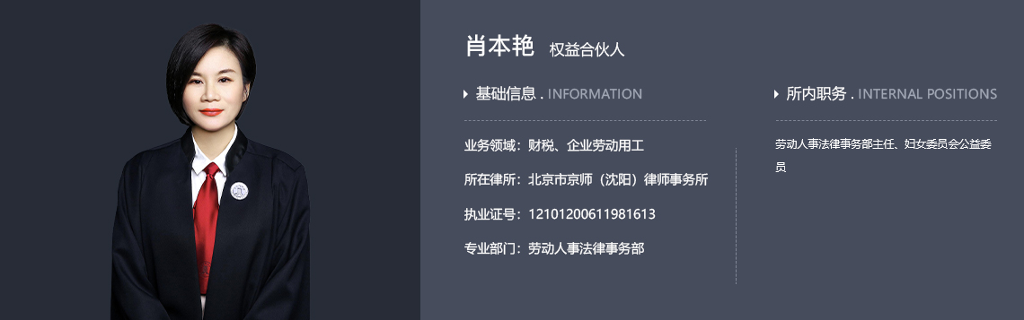 北京市京师(沈阳)律师事务所劳动人事法律事务部主任、合伙人、妇女委员会公益委员、执业律师