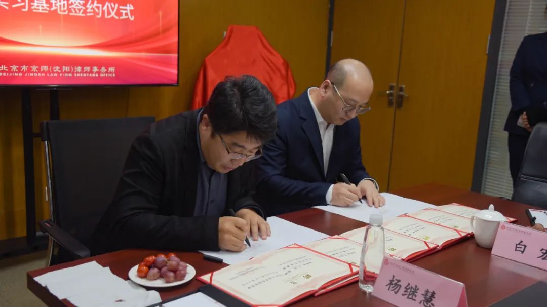 沈阳工程学院经济管理与法学院院长安玉兴教授、科研副院长田凤权博士、教学副院长刘岩博士、法律系主任姚秀盈老师、就业总指导员亓俊老师、科研秘书郑萍博士、法学专业负责人杨继慧教授、京师(沈阳)分所执行主任王辰、管委会常务副主任姚亮、党支部书记李英勇、监事会副主任王智远、重大疑难案件解决中心副主任李玉红、行政总监白宏出席了会议。优秀毕业生代表京师沈阳律所合伙人杨婵钰、执业律师尹少江列席了会议。签约仪式由律所管委会常务副主任姚亮主持。