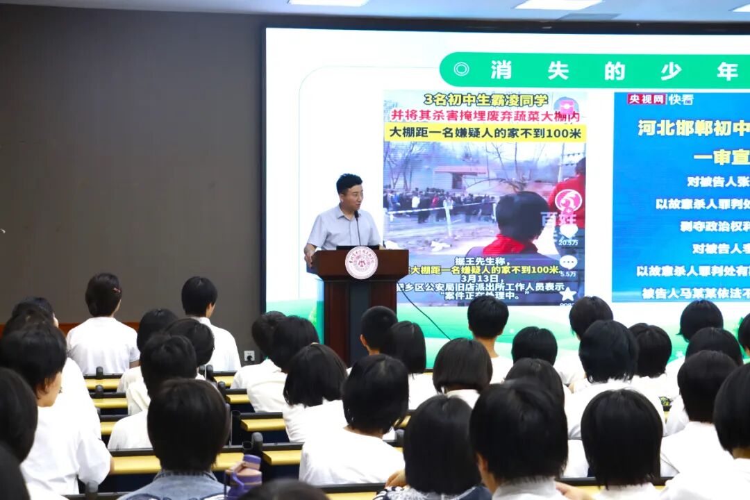 课堂上,李新律师以贴近学生生活的视角切入,避开复杂理论说教,通过通俗的语言与典型场景分析,让同学们直观认识校园欺凌的危害。他不仅讲解了肢体冲突、语言侮辱、网络造谣、孤立排挤等常见欺凌形式,还结合《未成年人保护法》等相关法律规定,清晰界定了欺凌行为的法律边界,明确实施欺凌可能面临的责任后果,帮助同学们在心中树立“知法、守法”的底线意识。为让“应对校园欺凌”的知识更易理解、更能落地,他特别采用模拟场景互动形式,围绕“遭遇欺凌如何应对”“发现欺凌是否干预”等核心问题搭建真实情境,邀请学生扮演不同角色沉浸式体验。这一方式让学生从“被动听”转为“主动参与”,快速掌握应对实操方法,也让抽象的法治知识变得具象可感。